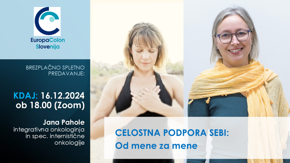 Vabljeni, da si ogledate posnetek spletnega predavanja, ki je bilo v ponedeljek, 16. 12. 2024 ob 18.00 prek Zoom-a. Z nami je bila Jana Pahole, dr. med., integrativna onkologinja in specialistka internistične onkologije, Svetlika.si. Izvedeli boste več o vplivu, ki ga imajo naše misli na naše telo, kako se ujamemo v krog negativnih misli in kako se naše telo ob tem počuti, ter spoznali orodja, ki so vam lahko v pomoč, da se izvijete iz primeža strahu, nemoči, panike, negotovosti.