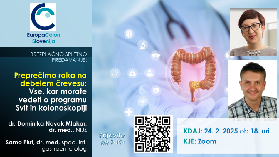 Vabljeni, da si pogledate posnetek spletnega predavanja, ki je bilo v ponedeljek, 24. 2. 2025 ob 18.00 prek Zoom-a. Z nami sta bila bosta dr. Dominika Novak Mlakar, dr. med., vodja programa Svit na NIJZ in Samo Plut, dr. med, spec. int. gastroenterolog, vodja enote za endoskopsko diagnostiko, UKC Ljubljana. Svojo osebno zgodbo pa je delil Samo Podgornik, ambasador Svita. Posnetek si lahko ogledate TUKAJ.